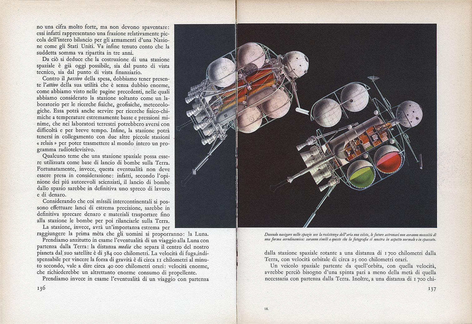 Рисунок из книги второго издания (1960) показан выше, в третьем издании (1963) местоположение рисунка изменено. Пояснительная надпись: «Будучи вынужденным ориентироваться в космическом пространстве, где нет сопротивления воздуха, будущие космические корабли не будут нуждаться в аэродинамической форме: они будут похожи на те, что показаны в обычном и поперечном сечении на иллюстрации». Расположение рисунка на марке такое же, как и в книге, причём на рисунках нет пояснительных надписей.