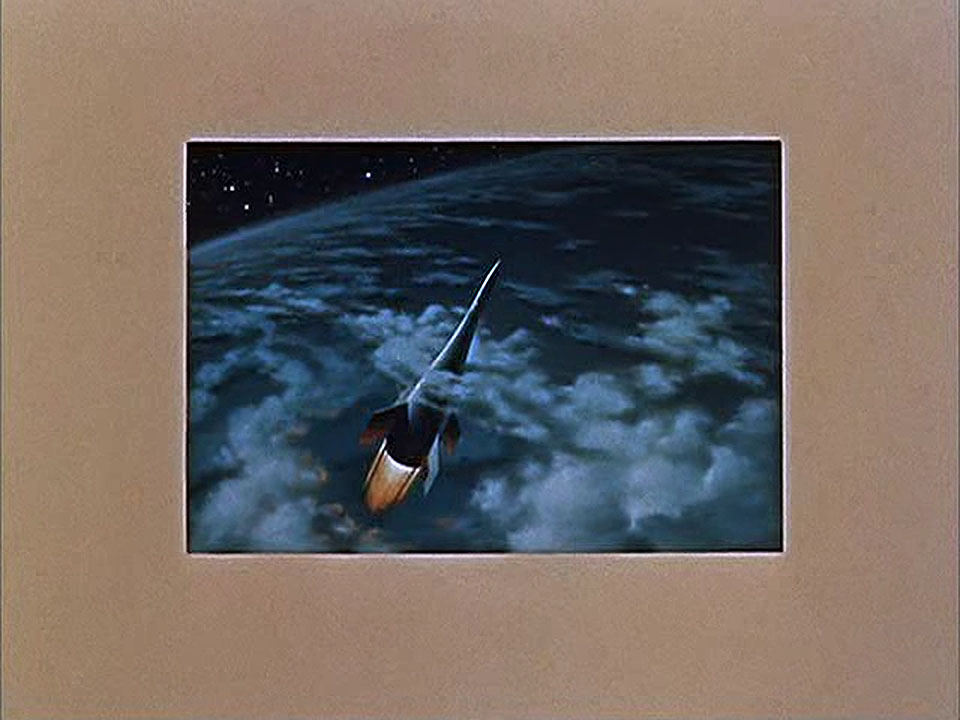 Рисуя астронавтов внутри станции, Жан Джаннини творчески переработал рисунок из фильма США. Это иллюстрация из телевизионного фильма «Человек и Луна» (Man and the Moon) компании Уолта Диснея. Впервые по телевидению фильм показан 28 декабря 1955 года. В фильме много рассказывается о предстоящем освоении космического пространства, в частности, о строительстве космической станции на околоземной орбите. Приведу небольшой отрывок из фильма, поясняющий предысторию интересующей нас иллюстрации. Рассказывает Вернер фон Браун: