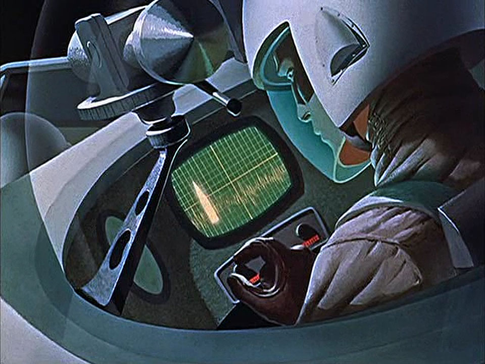 Теперь с помощью пульта дистанционного управления штурман разворачивает взлетающую грузовую ракету так, чтобы в момент выхода на орбиту она находилась на одной траектории с главным кораблём.