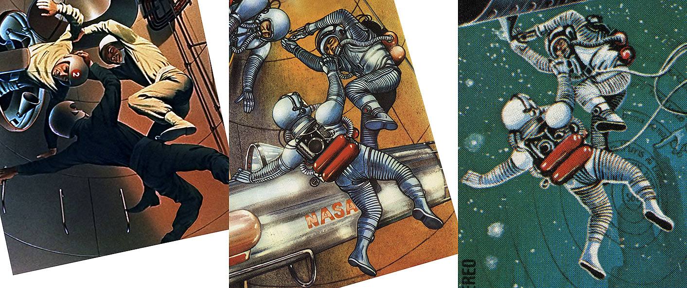 Рисунок «дерущихся» космонавтов позаимствован из книги 1962 года «Космос: Иллюстрированная энциклопедия» французского писателя Рене Гийо (Rene Guillot. L′espace: Encyclopedie en couleurs / Ill. de Giannini. – Hachette, 1962). Рисунки к книге выполнил французский иллюстратор Жан Джаннини.