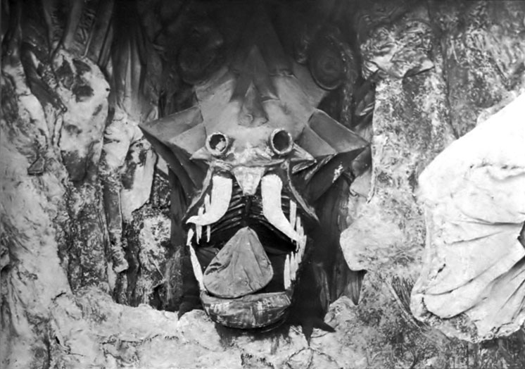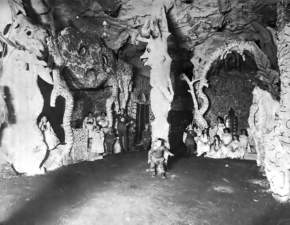 Надпись под второй фотографией: «Проход в замок Человека-на-Луне. Место обитания гномов и странных великанов, стражей замка Человека-на-Луне».