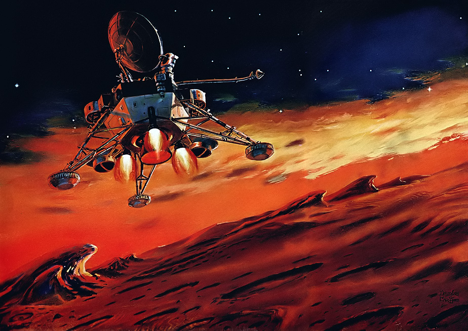 Через несколько месяцев спускаемый аппарат именно этой конструкции появился на иллюстрации Дугласа Чаффи к статье Карла Сагана «Марс: Новый мир для исследования», опубликованной в 1967 году в декабрьском номере американского журнала «National Geographic». Пояснительный текст к рисунку: «Санта-Мария» космического века, тормозя спусковыми ракетами, беззаботна в новом мире Марса. Завершая восьмимесячное путешествие, беспилотный корабль находится на поверхности, испещрённой метеоритами и отполированной пыльными бурями. Время: возможно, 1974 год, если всё пойдёт хорошо для первого из ещё не рождённого поколения космических кораблей США, названного «Voyager». Его сложные научные системы «попробуют» почву на содержания минералов и свидетельство жизни; телевизионные камеры и другие инструменты будут посылать данные обратно на Землю, и которые, как надеются учёные, разрешат вопросы, беспокоящие людей со времён вавилонян, связывавших планету с войной».