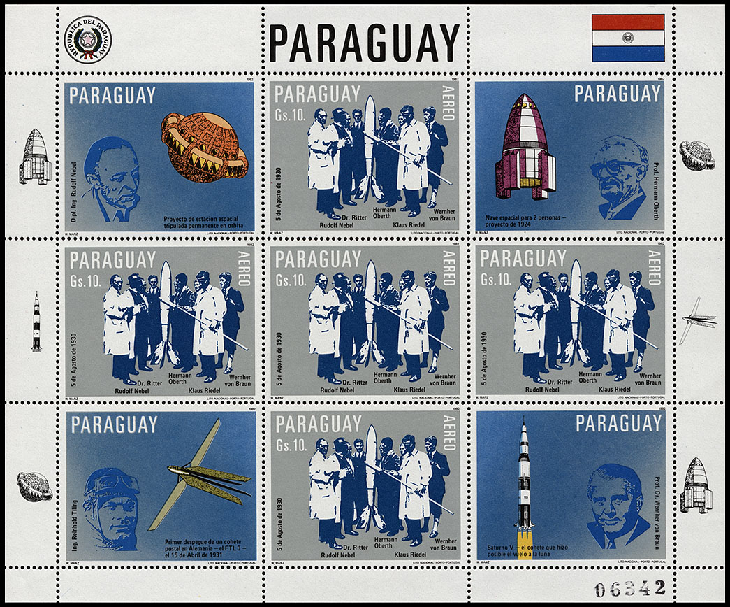 24 января 1983 года в Парагвае выпущена серия почтовых марок, посвящённых германским пионерам ракетной технике. На поле и купоне малого листа (марка Michel № 3605) изображена фантастическая станция 1932 года.