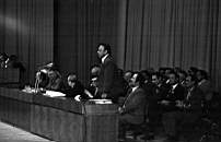 Президиум (слева направо): Андрей Балабуха (Ленинград) (за трибуной), ?, ?, Станислав Мешавкин (Свердловск), Виктор Колупаев (Томск), Олег Поскрёбышев (Ижевск), Владислав Крапивин (Свердловск), ? (Архив: Коблов В. (Екатеринбург); Фото: Коблов В. (Екатеринбург); Обработано: Кузовлев И. А. (Екатеринбург), Зубакин Ю. Ю. (Челябинск))