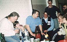 (слева направо): Андрей Самойлов (Уфа), Ольга Смирнова (Пермь), Сергей Лукьяненко (Москва), А. Зебзеев (Яйве), ?, Л. Долгова, Геннадий Карпов (Москва), Маша Лукашина (Пермь) (Архив: Самойлов А. И. (Уфа); Фото: ?; Обработано: Зубакин Ю. Ю. (Челябинск))