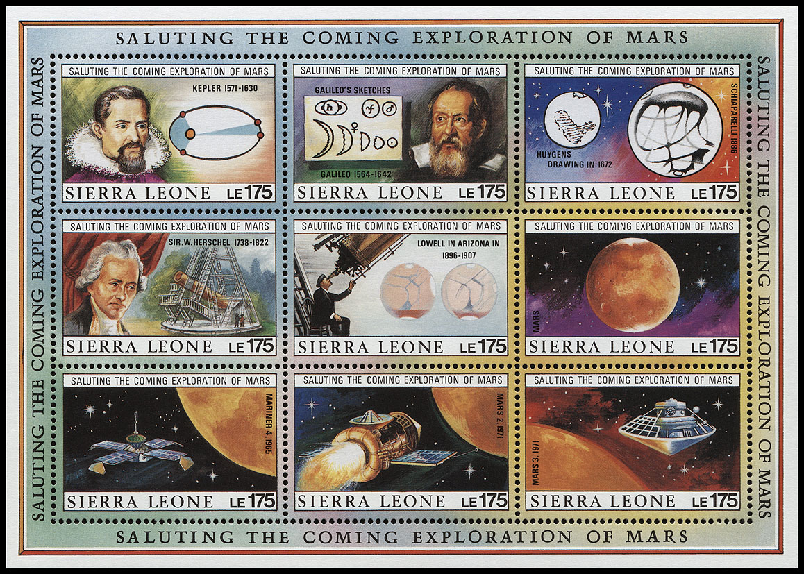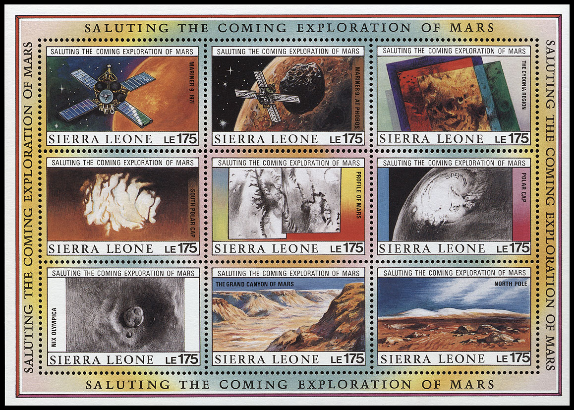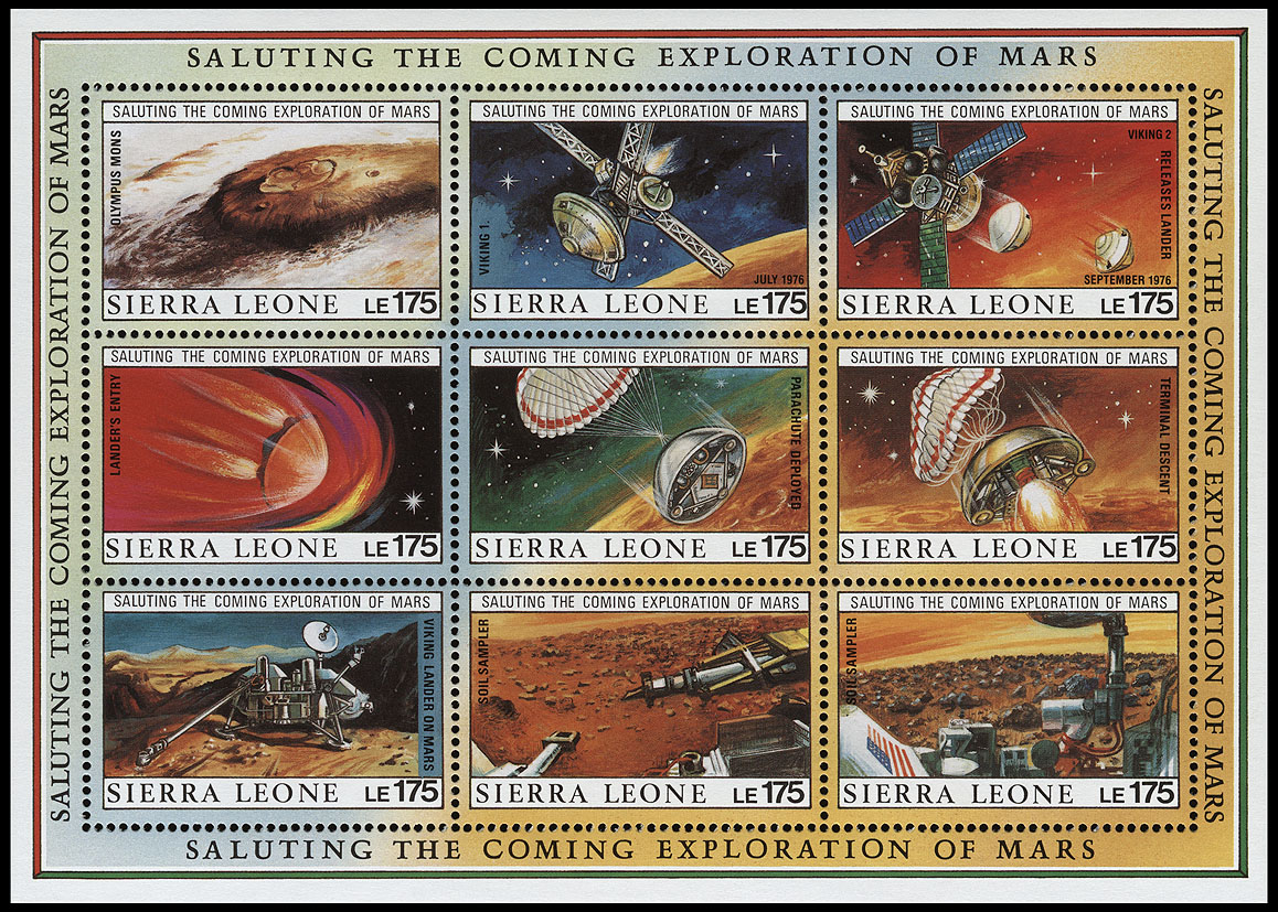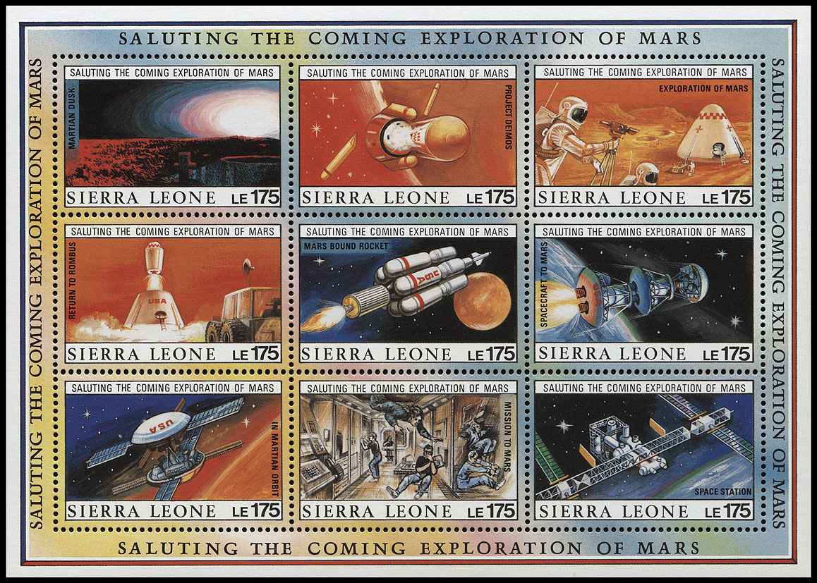 15 января 1990 года для Сьерра-Леоне была выпущена большая серия почтовых марок «Приветствуя предстоящее исследование Марса». Серия большая, 36 марок и один блок, выпущена по инициативе американца Алана Шона Файнстайна (Alan Shawn Feinstein).