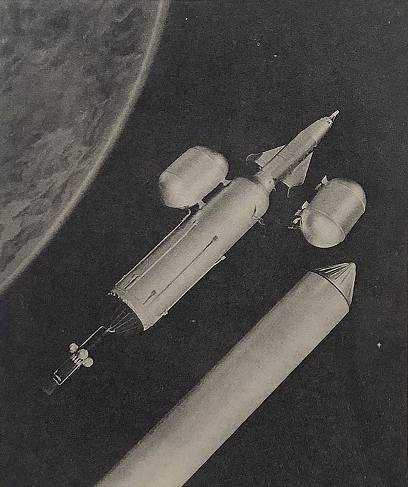 Интересна творческое переосмысление иллюстрации Эда Валигурски. В 1972 году к Дню космонавтики в СССР был выпущен художественный маркированный конверт с рисунком Рима Стрельникова. На конверте изображены две космические станции, летящие к разным планетам, вращающимся вокруг Солнца. Судя по очертаниям нижней станции, это условное изображение советская АМС «Венера». Но непонятно, почему она развёрнута в противоположную от планеты сторону спускаемый аппарат сзади, а корректирующая двигательная установка развёрнута в сторону планеты.